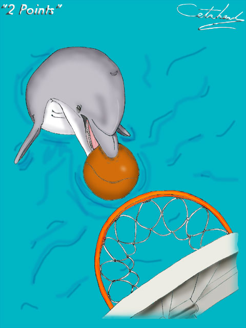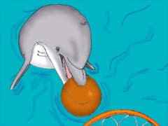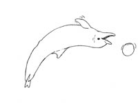 A backflippping dolphin attempting to grab a ball. This was a simple in-class sketch with no visual references. |