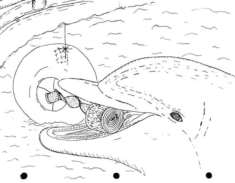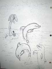 Here's an example of too much time, too few pencils... Pen is so unforgiving... notice the dolphin with the twisted neck... |