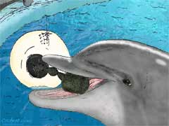 This one shows a dolphin slapping it's tail on the water , as they seem to enjoy doing from time to time. I guess it can get a little hard to itch back there, so this probably makes a good substitute! |