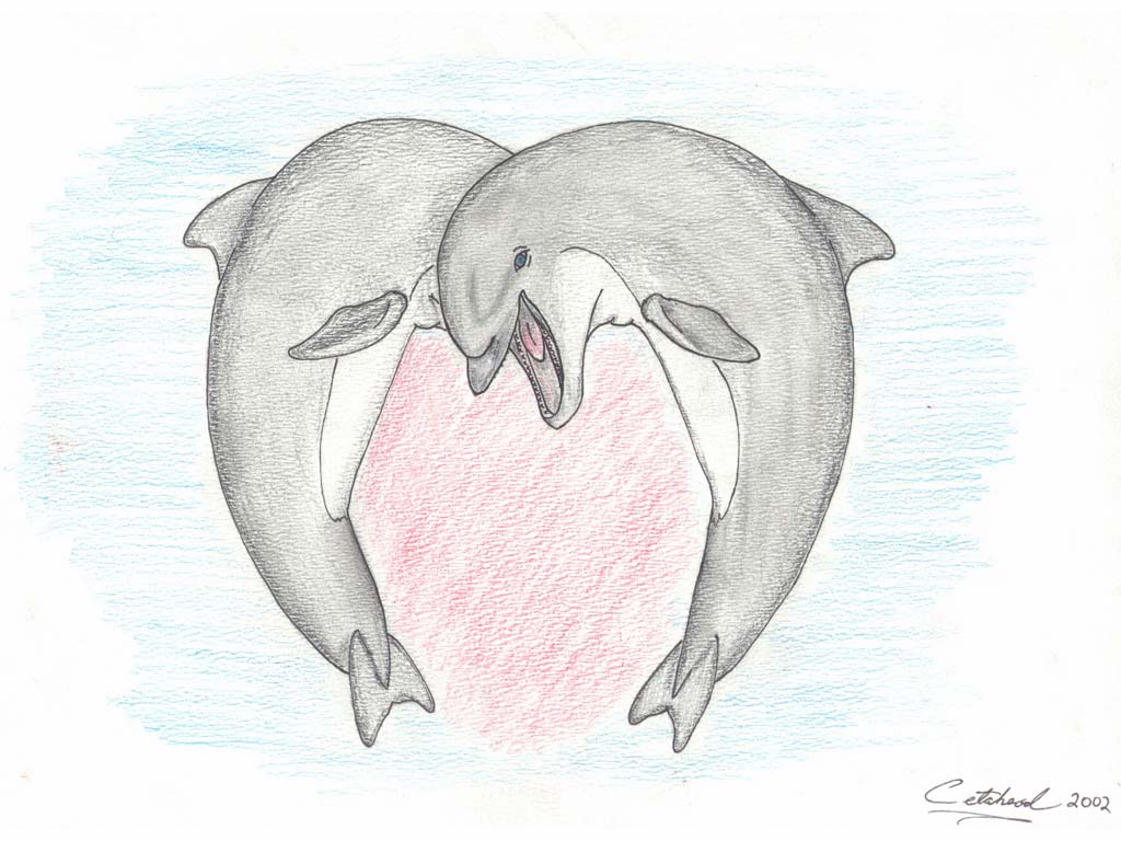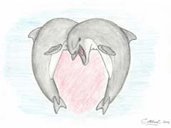 This is a hand sketch I did as a request. The dolphins are supposed to be making the shape of a heart, although I suppose it's more of a circle.