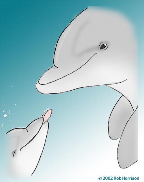 This was a VERY late night inspiration about a dolphin calf and it's mother. I still smile when I see it... |