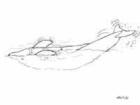 I drew this one remembering how the dolphins at TDI will greet you at times - by waving their pec fin as if waving to you. This was never trained, but was something they picked up on.